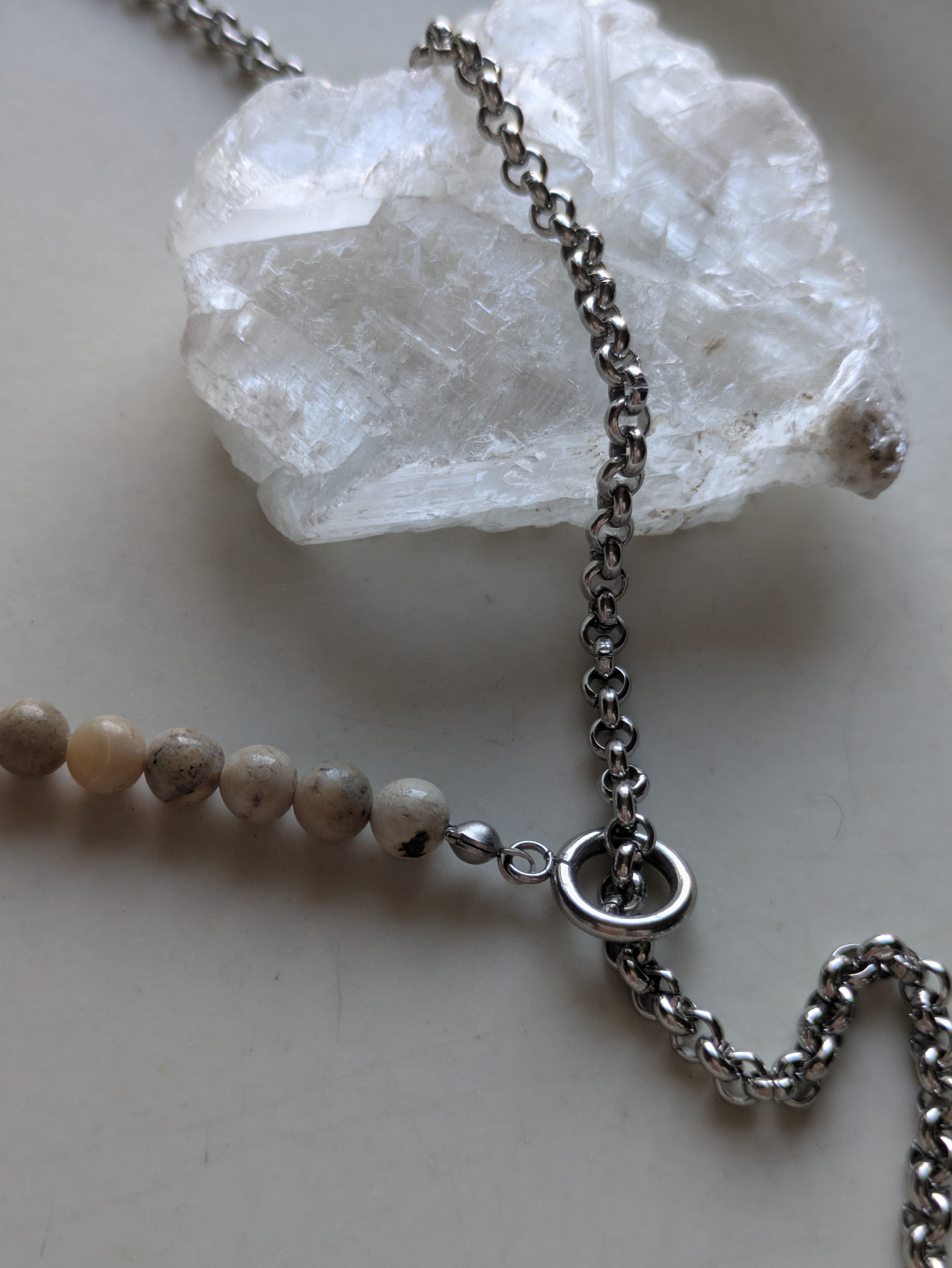 # アフリカンオパール&水牛ビーズサージカルステンレスマンテルネックレス